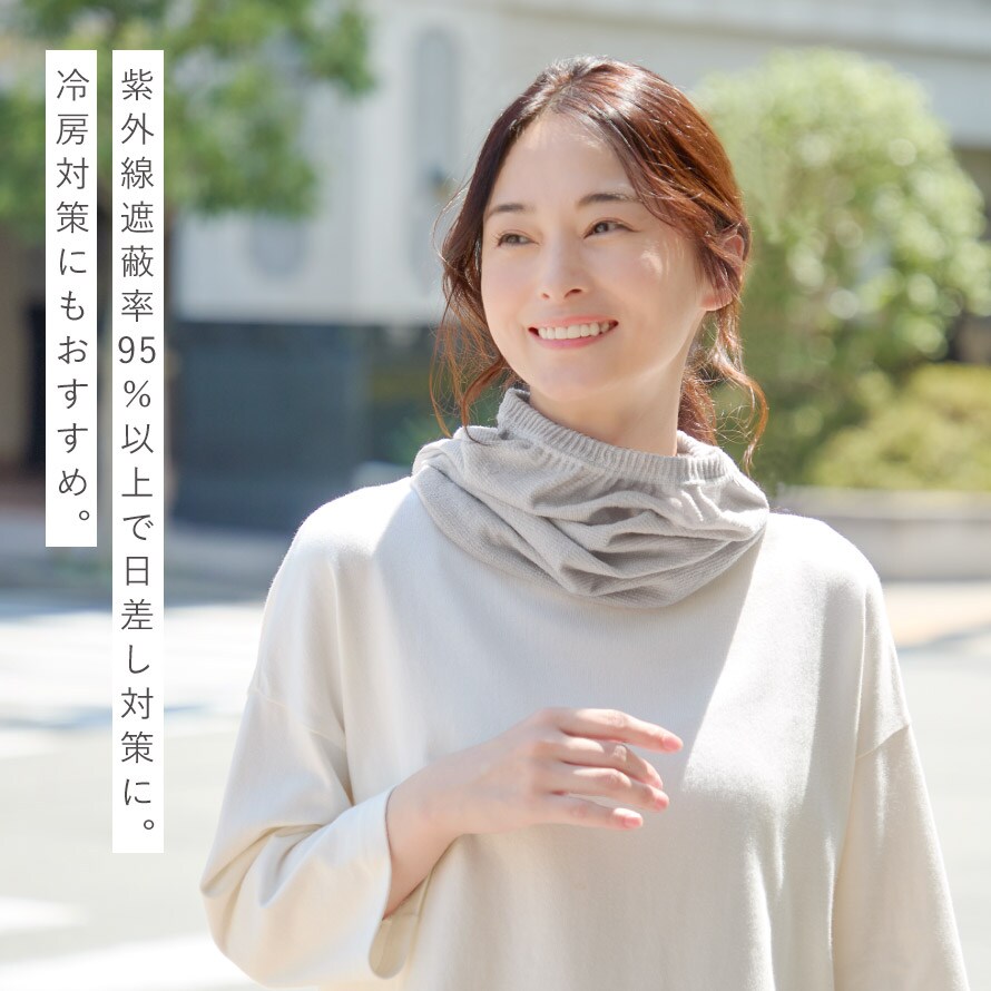 気になる首元をカバー。シワやたるみ隠しとしてもおすすめ。紫外線遮蔽率95%以上で、日差し対策としても。冷房対策にもおすすめです。