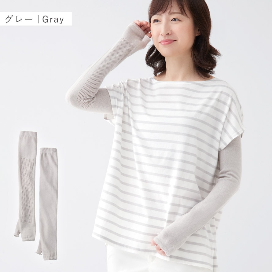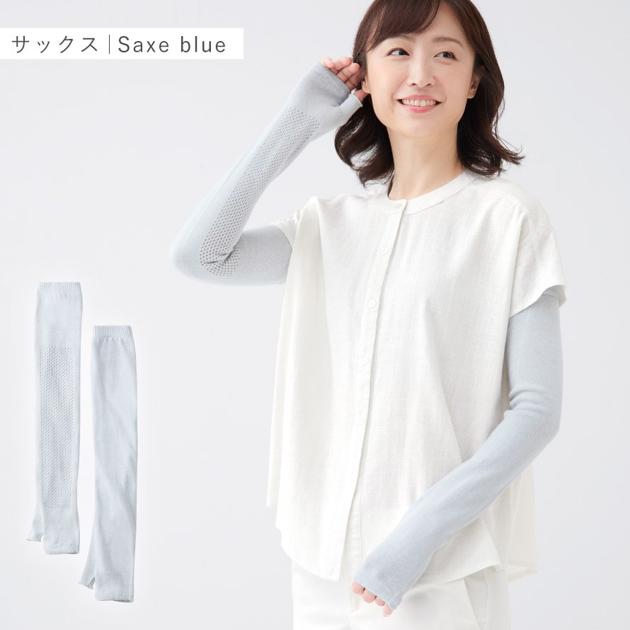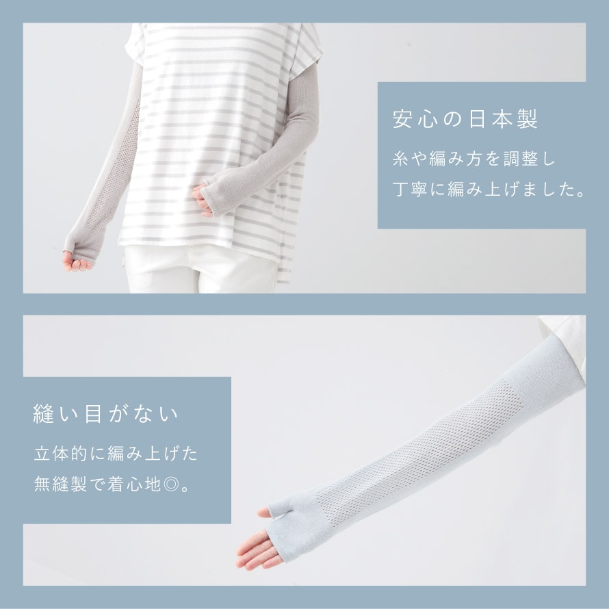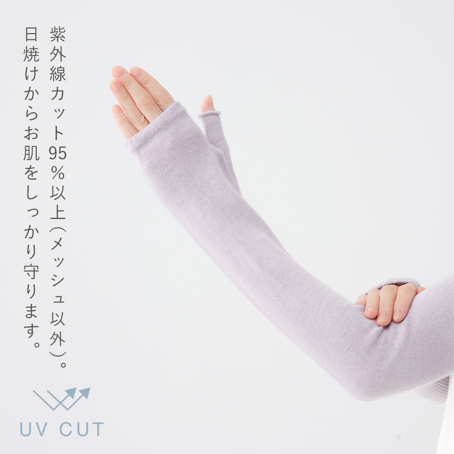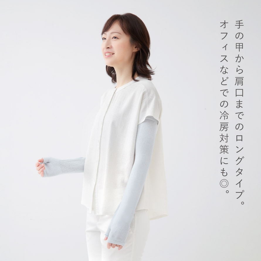 手の甲から肩口までのロングタイプ。日焼け対策はもちろん、オフィスなどでの冷房対策にも◎。