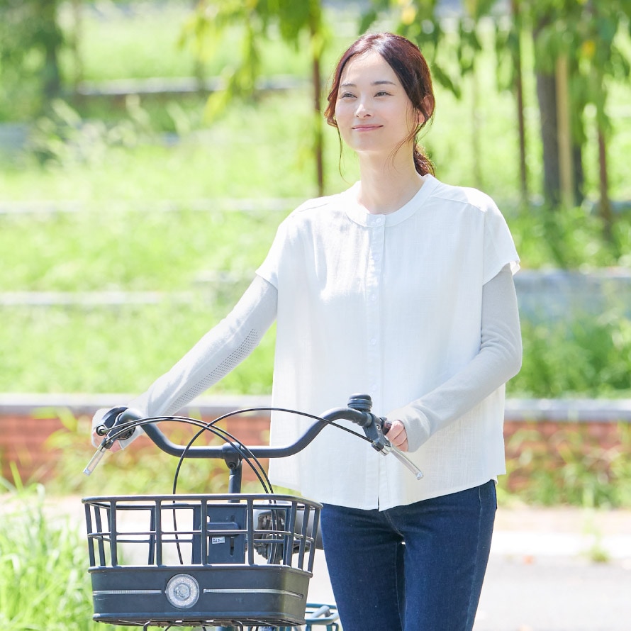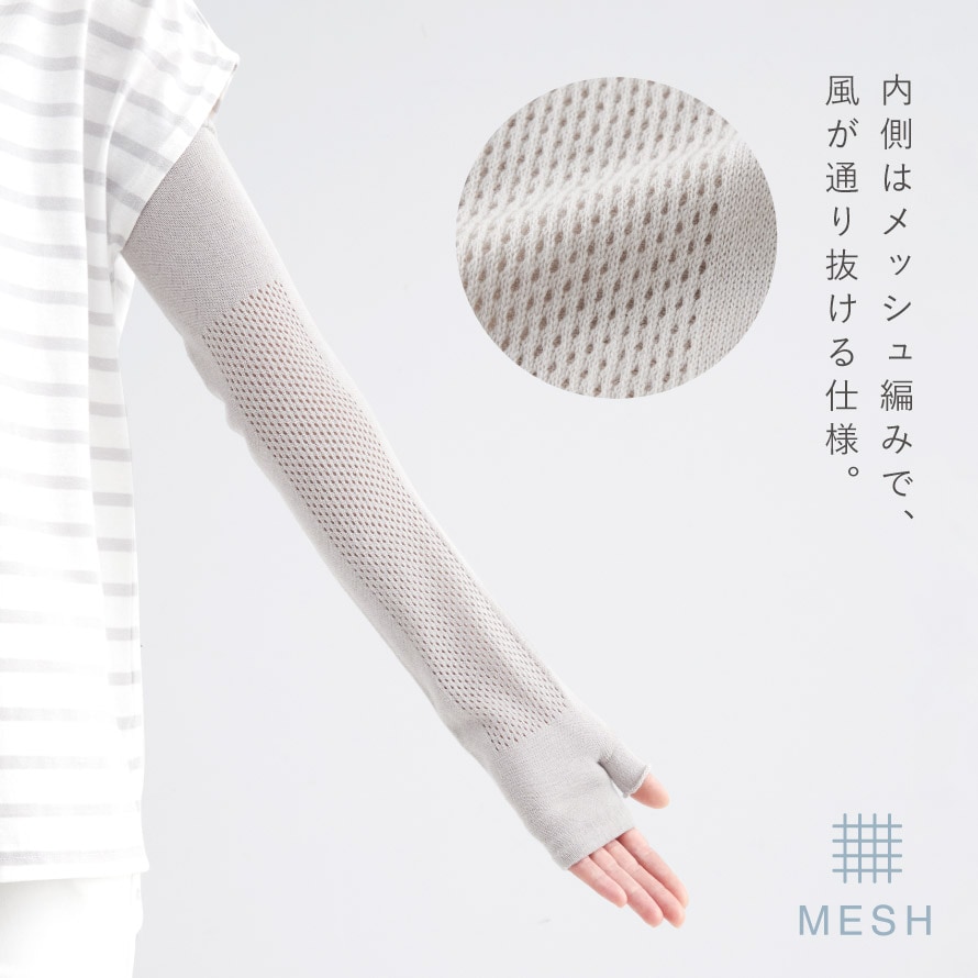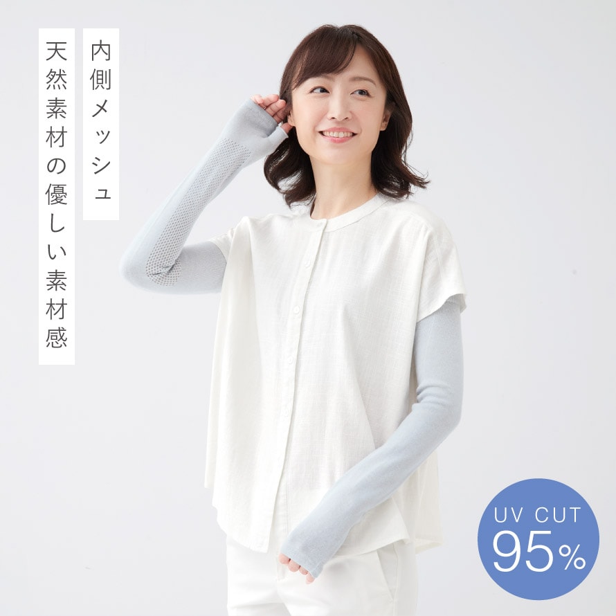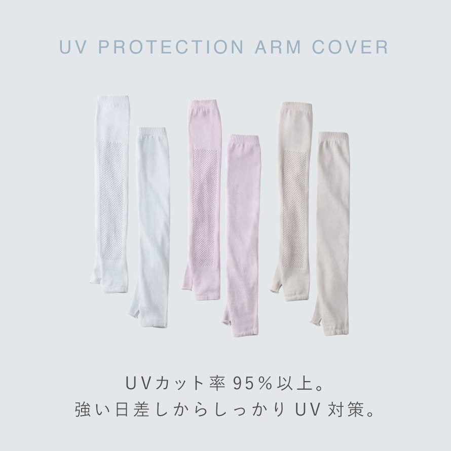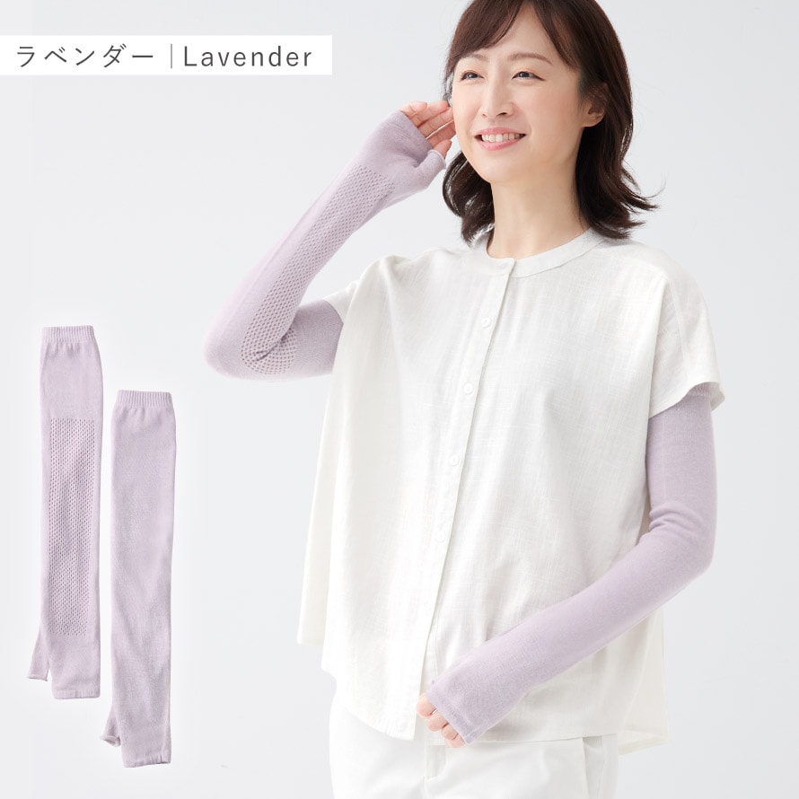 手の甲から肩口までのロングタイプ。日焼け対策はもちろん、オフィスなどでの冷房対策にも◎。