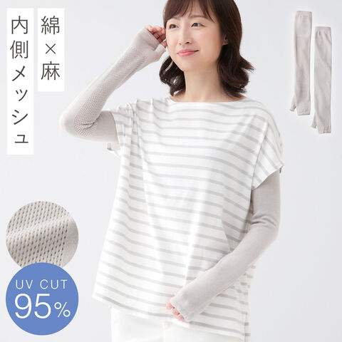 アームカバー UVカット レディース 夏 日焼け対策 uv 綿麻 ロング メッシュ 涼しい 手の甲 カバー 涼しいメッシュ編みの綿麻UVアームカバー