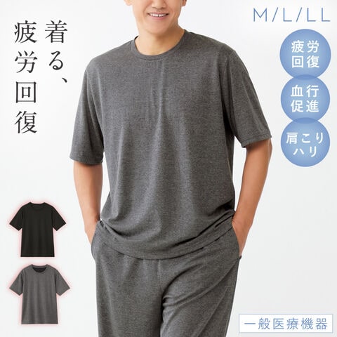 リカバリーウェア パジャマ 疲労回復 夏 半袖 メンズ【一般医療機器】春夏用 Uネック 部屋着 肩こり 冷え性 疲れが取れる だるさ 腰痛 血行促進 快眠 すっきり コスパが良い お得 安い 無地 ギフト ルームウェア リカバリーケア 半袖シャツ 男性用