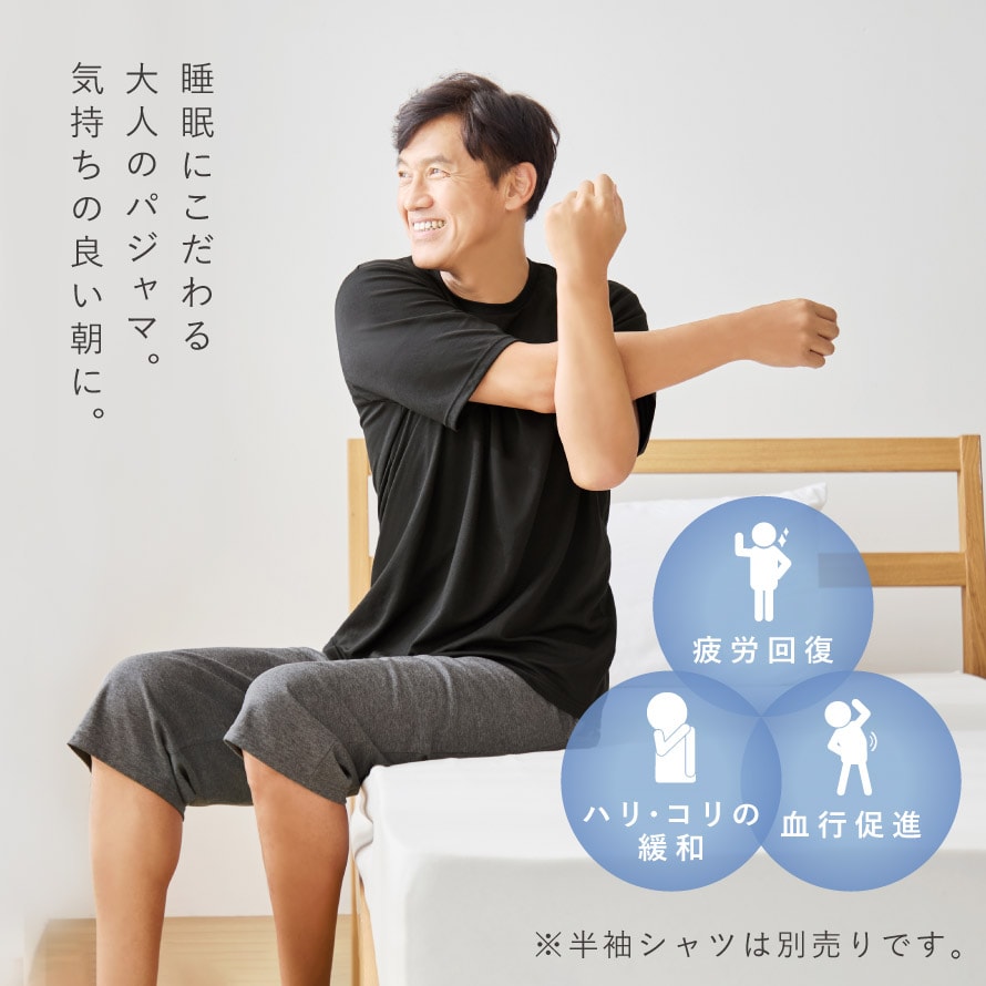 就寝時、リラックス時の着用がおすすめ。着て休む間に1日の疲れをリカバリー。快適でアクティブな毎日へサポートします。