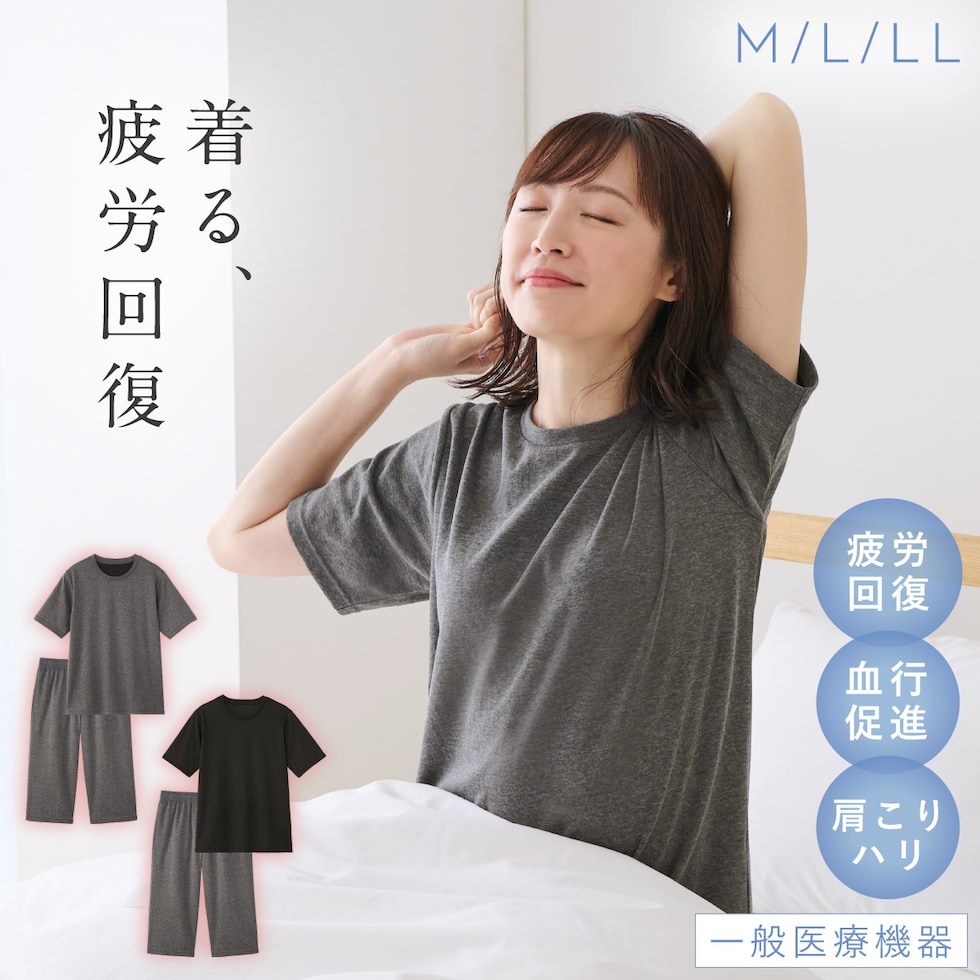 疲れた体を、着て休んで回復。血行促進と疲労緩和をサポートする、「一般医療機器認定」のレディース用リカバリーウェア上下セットです。