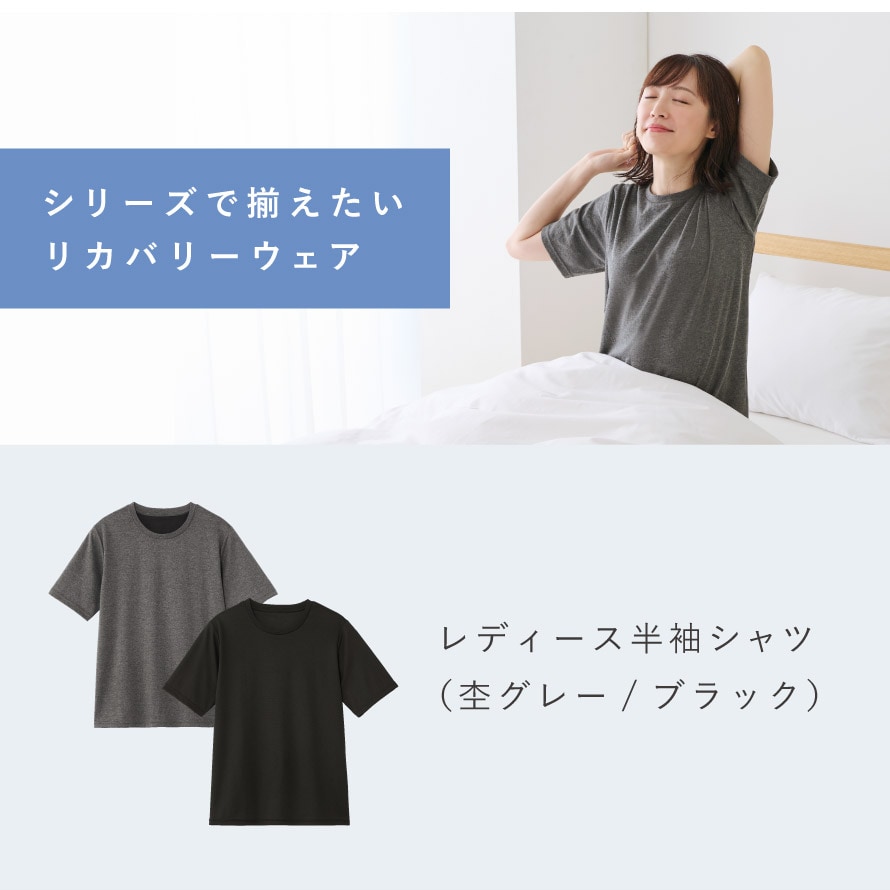 見た目はシンプル、でも内側には“整う力”を秘めたリカバリーウェア。シンプルで合わせやすく、年齢を問わずご使用いただけます。同シリーズの単品「七分丈パンツ」「半袖シャツ」も展開中。セット使いはもちろん、単品購入もおすすめです。