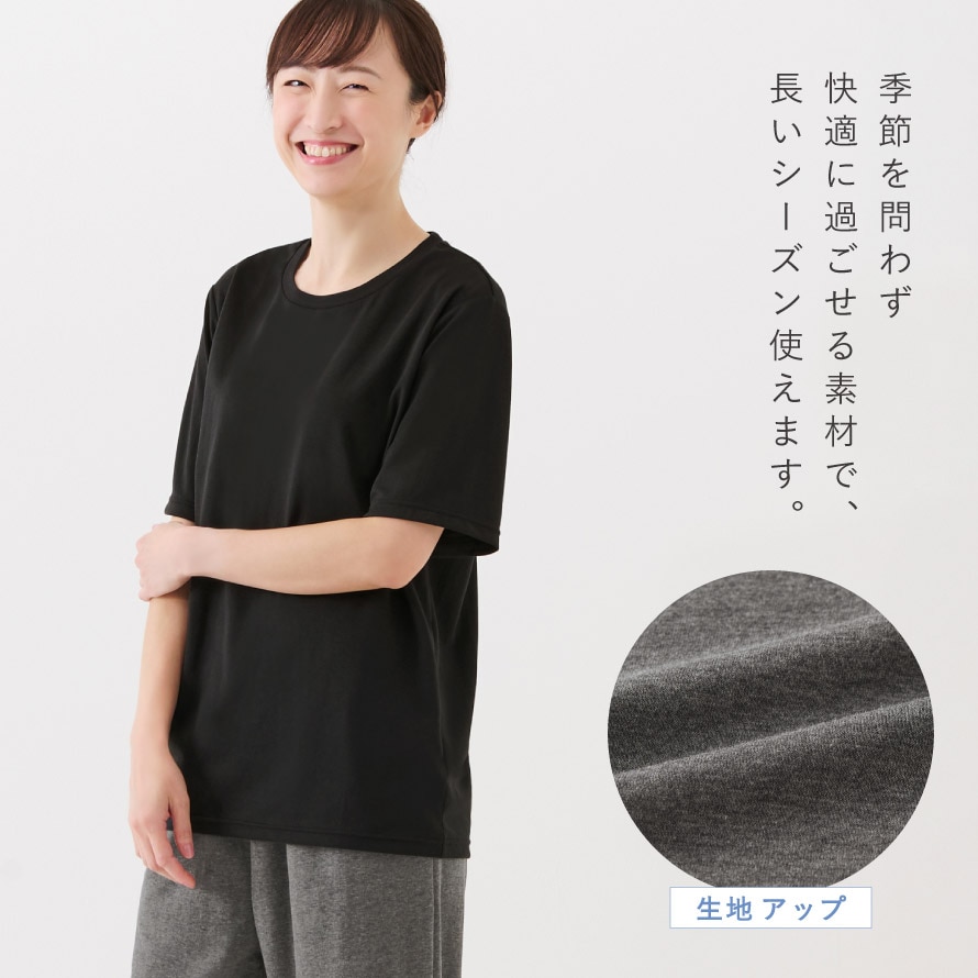 通年使える軽くて、とろんとしたやわらかな素材は、春・夏・秋・冬いつでも快適。M・L・LLの大きいサイズ展開で、ゆったりと着用できます。