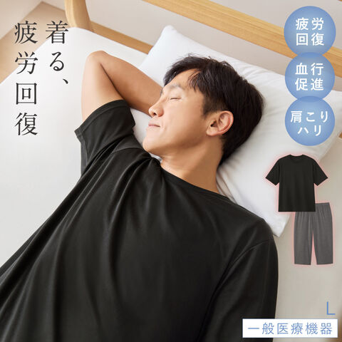 疲れた体を、着て休んで回復。血行促進と疲労緩和をサポートする、「一般医療機器認定」のメンズ用リカバリーウェア上下セットです。