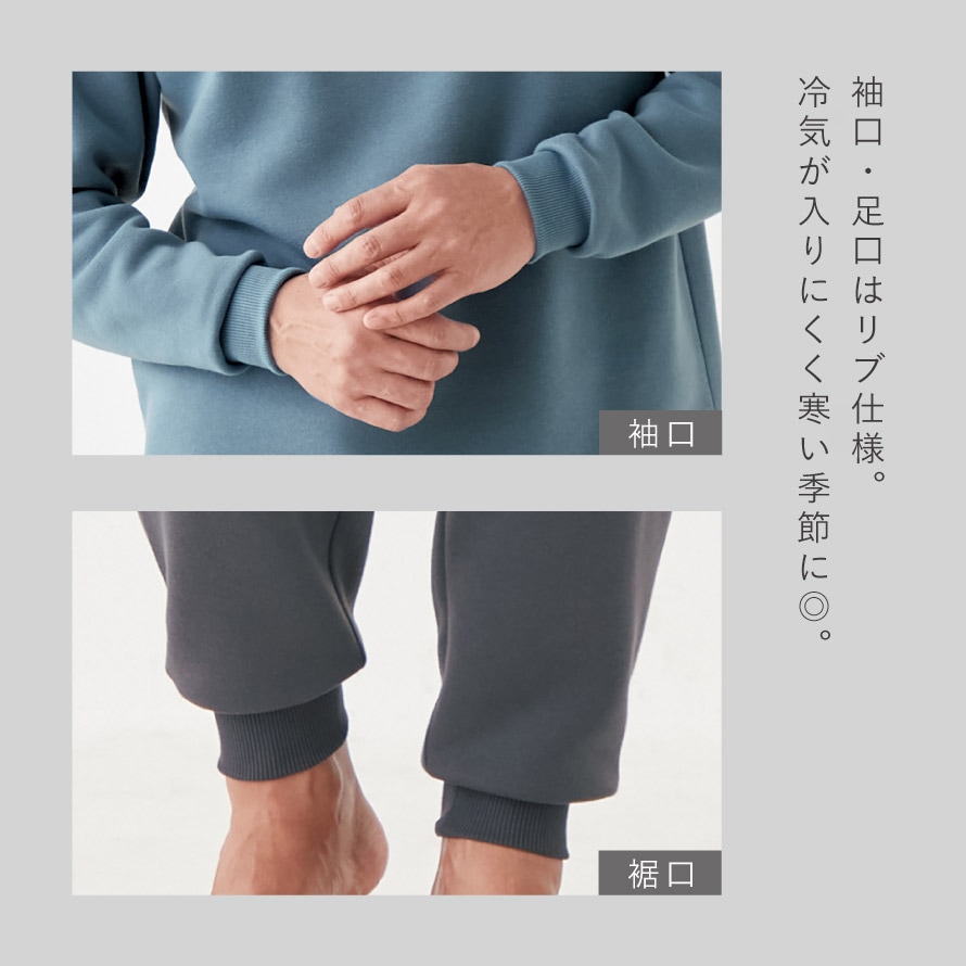 袖口・足口はリブ仕様。冷気が入りにくく寒い季節におすすめ。