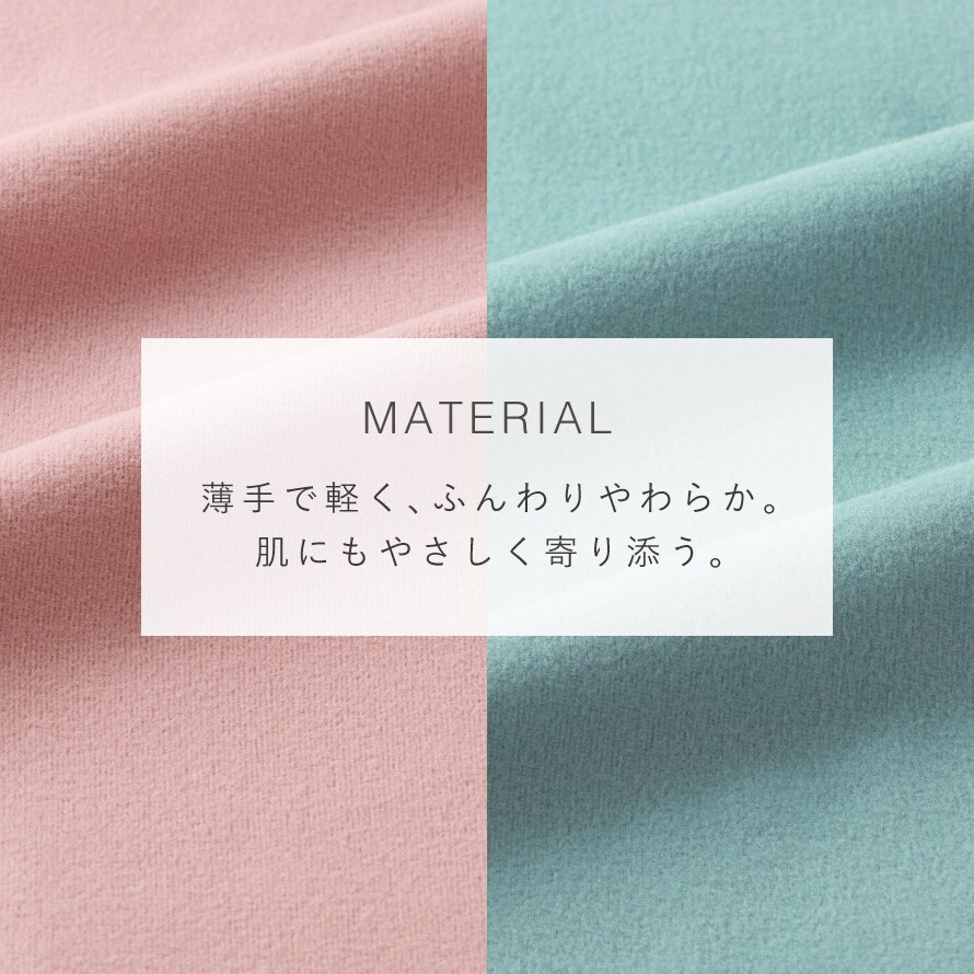 薄手で軽く、ふんわりやわらかな風合い。デリケートな肌にもやさしく寄り添います。