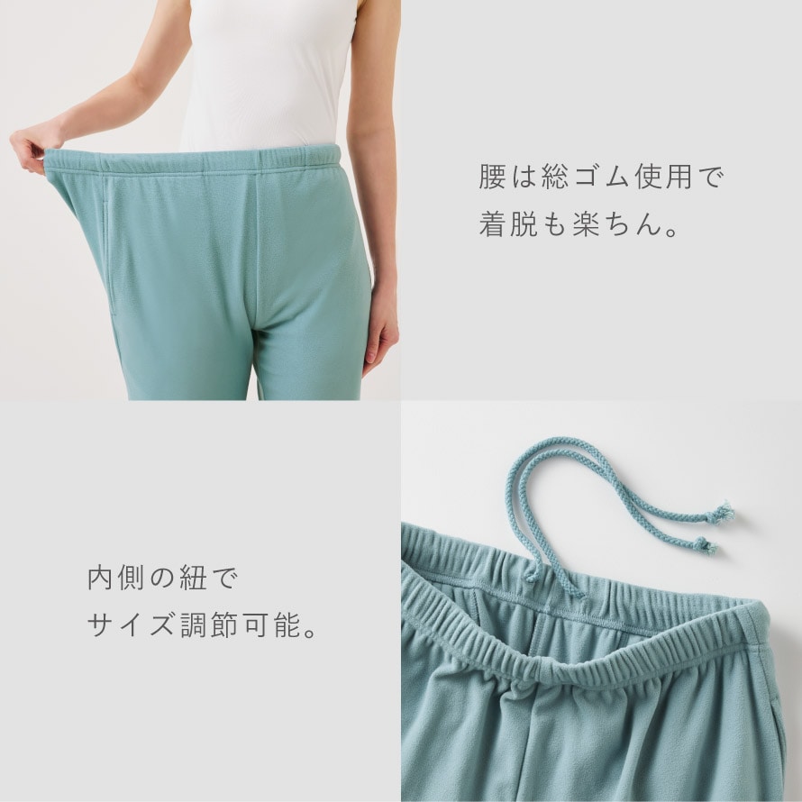 パンツは総ゴム仕様でラクに履けて、内側の紐でサイズ調節も可能。お好みのフィット感で着こなせます。スマホや小物を入れられる便利なポケット付き。