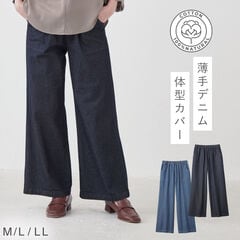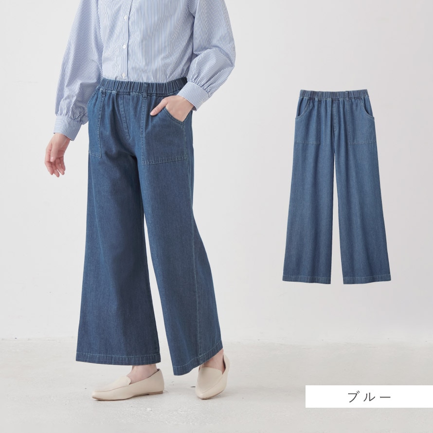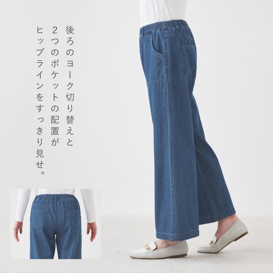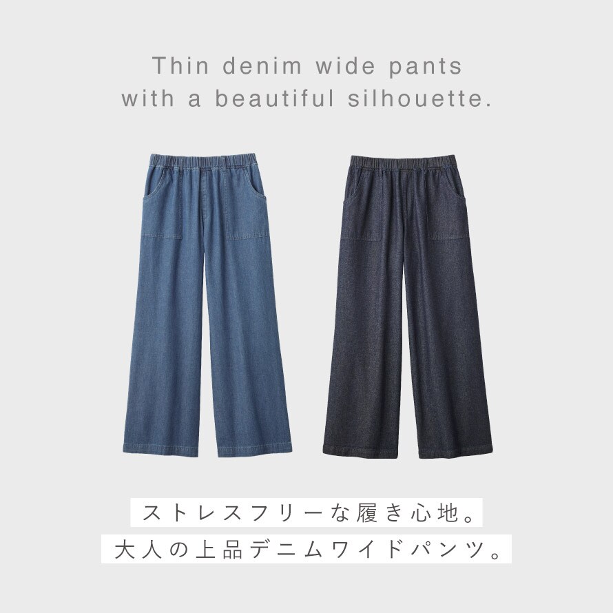 大人が上品に履ける、薄手の綿100%デニムワイドパンツ。