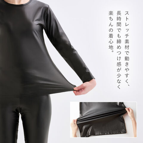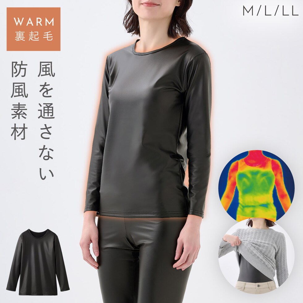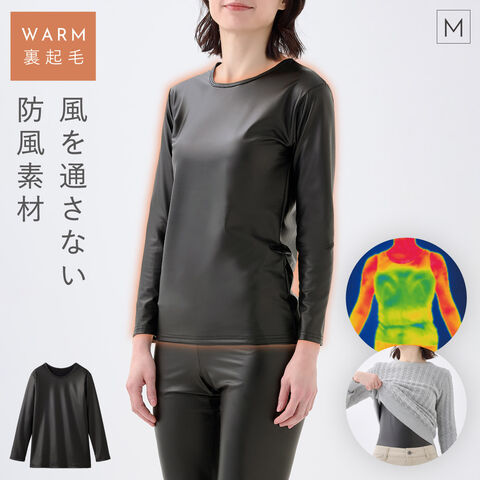 防風インナー 防寒インナー レディース バイク ラミネート 長袖 暖かい 冬 インナー 風を通さない 保温 あったか 裏起毛 ストレッチ 防風保温ストレッチウエア 女性用 40代 50代 60代 70代