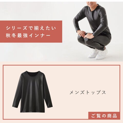 薄手のストレッチ素材で動きやすく、風を通さないだけでなく、内側までしっかり暖かい。洋服の下に着る長袖のメンズ防寒インナーです。
