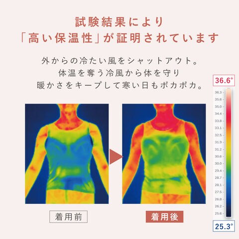 PUラミネートによる「防風効果」と「裏起毛素材」による高い保温性を両立した二重構造で体温を逃しません。着用後の試験結果(メーカー調べ)からも保温効果は証明されています。別売のズボン下と上下合わせて着るとより効果的です。