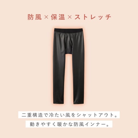 薄手のストレッチ素材で動きやすく、風を通さないだけでなく、内側までしっかり暖かい。洋服の下に着るメンズ防寒パンツです。