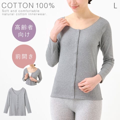 インナー レディース 綿100% 8分袖 前開き 綿 コットン 敏感肌 乾燥肌 綿100%ラグラン袖の前開きインナー 肌着 M L LL 大きいサイズ ゆったり 40代 50代 60代 70代 ミセス 婦人 シニア