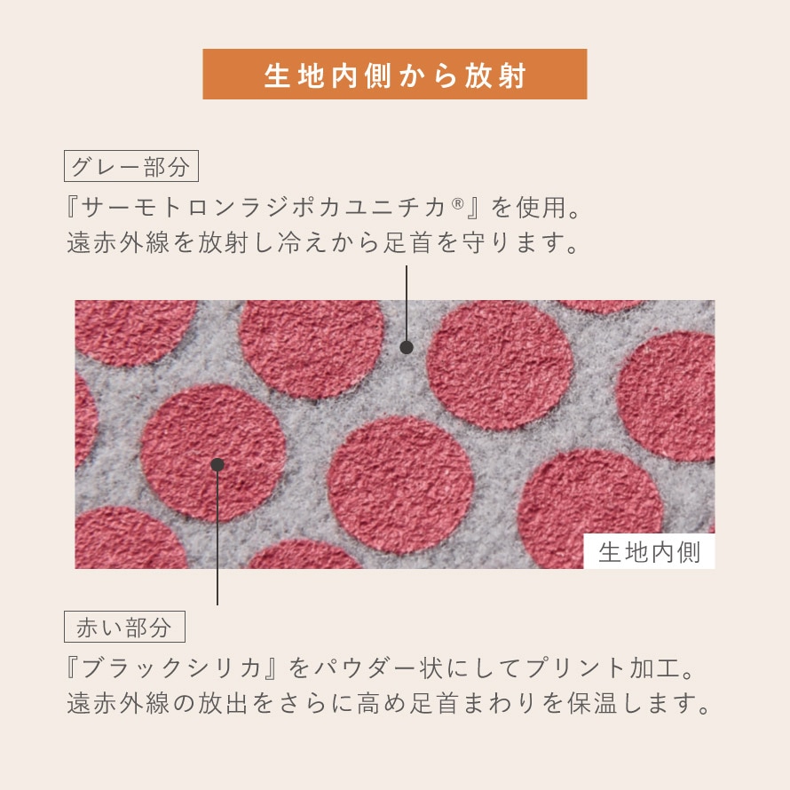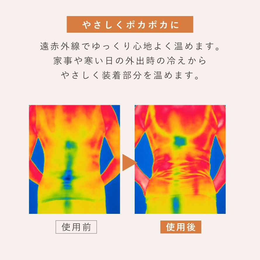 サーモトロンラジポカユニチカ素材を肌側に使用。赤外線を放射し冷えから腰まわりを守ります。