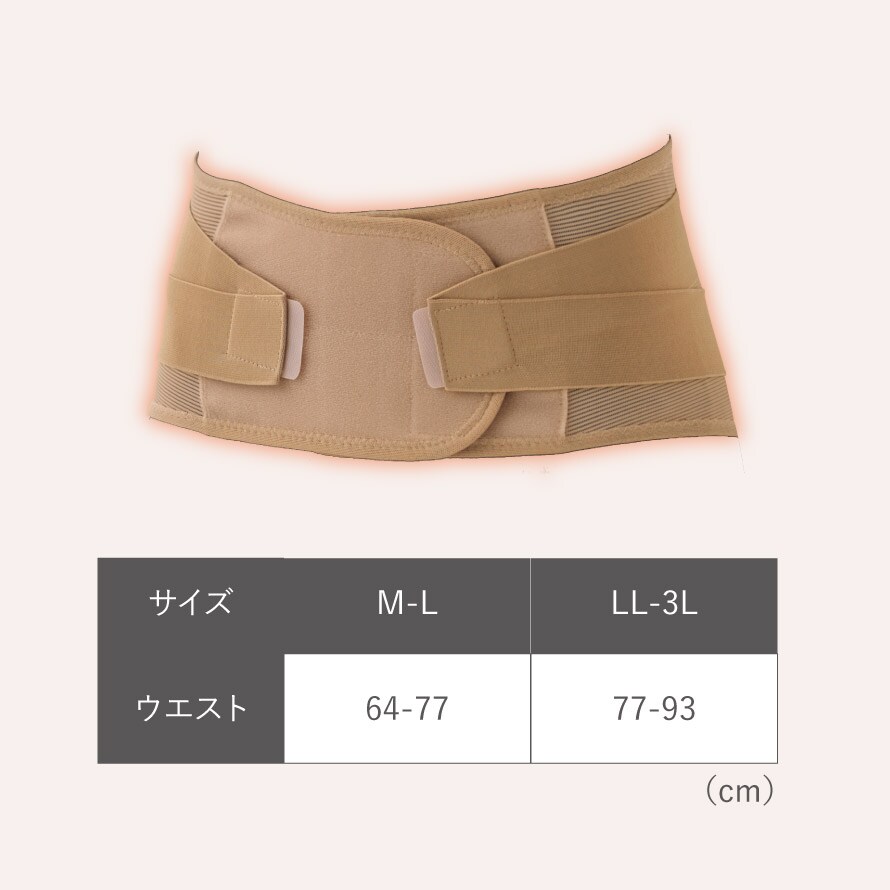 | サイズ | M-L/ウエスト64-77、LL-3L/ウエスト77-93cm |