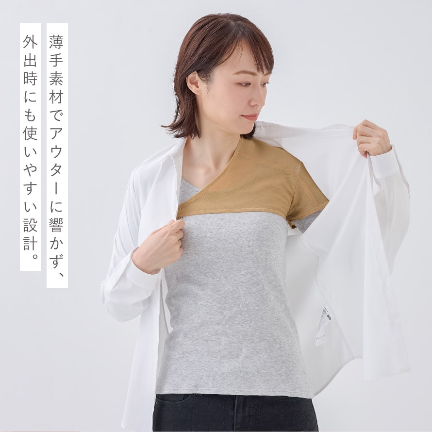 薄手素材なので洋服の下に着けてももたつかず、外出時にも使いやすい設計です。