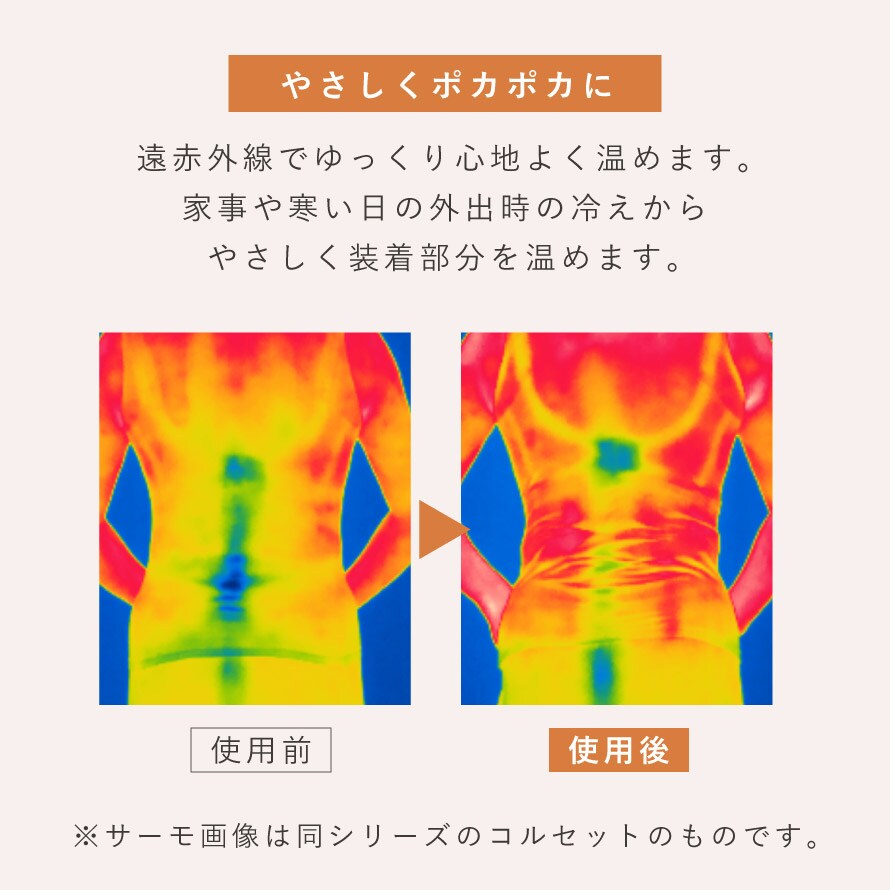 夜の就寝時から日中の作業中まで、幅広いシーンでご使用いただけます。関節が冷えてつらい時や、寒い朝の家事の際にも◎。