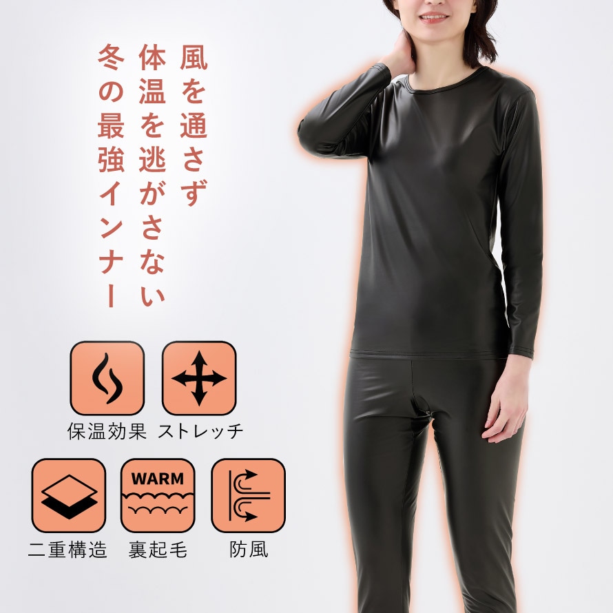 防風インナー 上下セット レディース 防寒 バイク ラミネート シャツ パンツ 暖かい 冬 保温 風を通さない あったか 裏起毛 ストレッチ 防風保温ストレッチウエア上下セット レディース 40代 50代 60代 70代