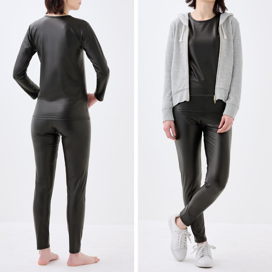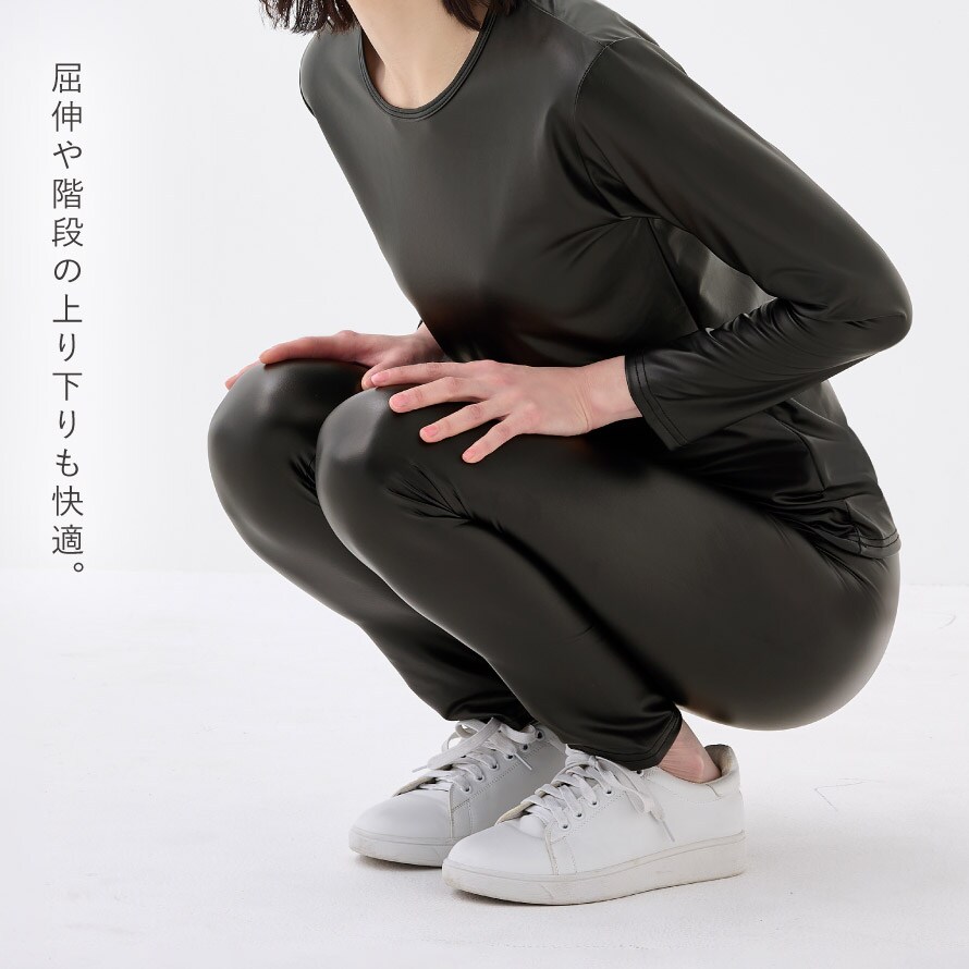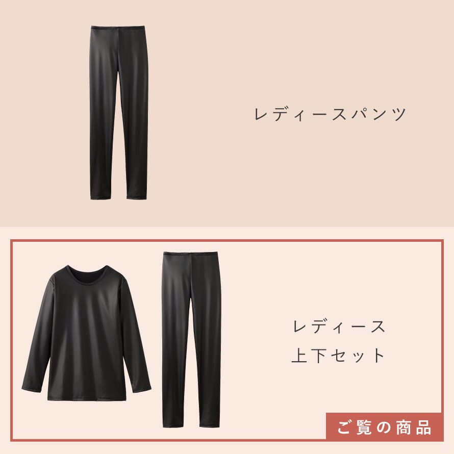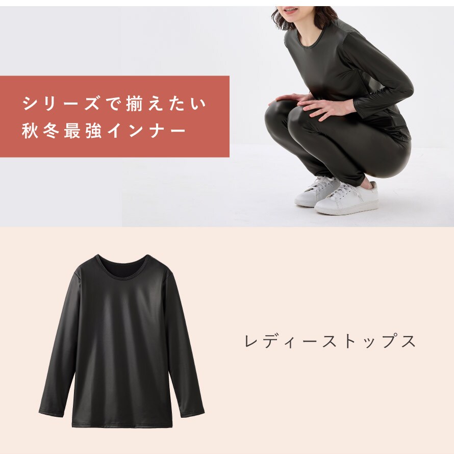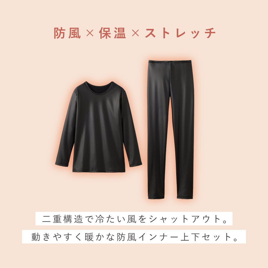 薄手のストレッチ素材で動きやすく、風を通さないだけでなく、内側までしっかり暖かい。洋服の下に着る、レディース防寒インナー上下セットです。