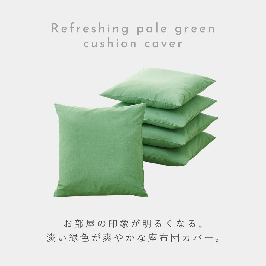 新緑を思わせるやさしい色合いが魅力の、早緑(さみどり)の座布団カバー5枚組です。淡く爽やかなグリーンが空間に自然な彩りを添え、お部屋を明るく和やかな雰囲気に演出します。