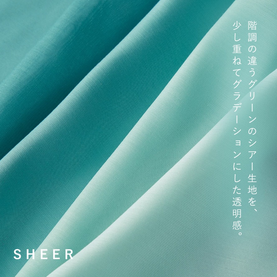 階調の違うグリーンのシアー素材の生地を、少し重ねてグラデーションを表現した爽やかな透明感。