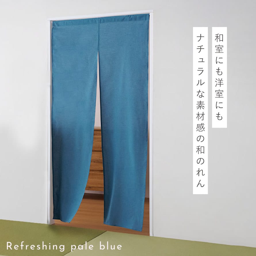 爽やかな淡い藍色。ナチュラルな素材感がお部屋の雰囲気を軽やかにします。清涼感のあるシンプルなデザインは和室でも洋室でも合わせやすく、インテリアのアクセントに。生地を染めているので、両面同色で設置面を選びません。