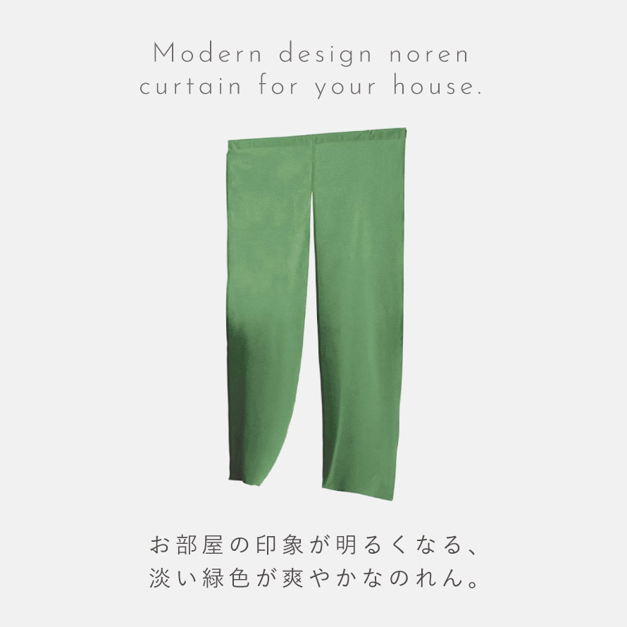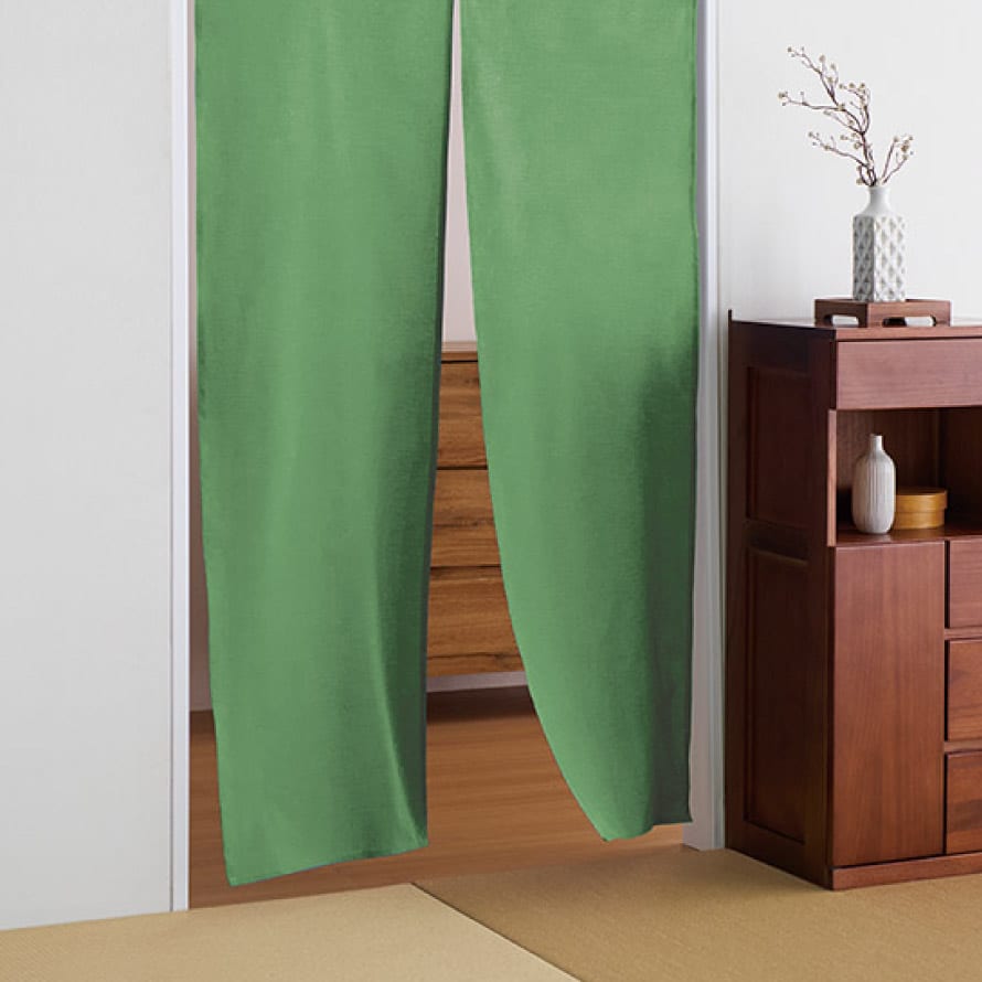 新緑を思わせるやさしい色合いが魅力の、早緑(さみどり)ののれん。やさしくやわらかな色合いが空間に自然な彩りを添え、ナチュラルな素材感と相まってお部屋の雰囲気を和ませます。