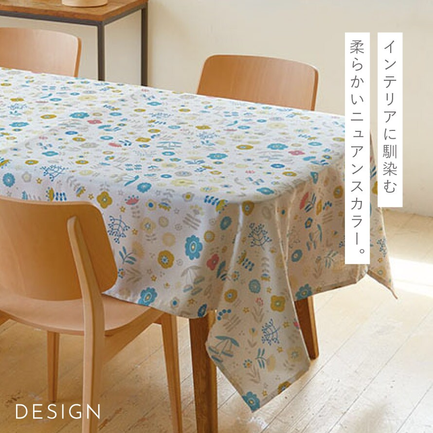 表にはっ水機能を施したテーブルクロス。テーブルを汚れやキズから守ってくれます。