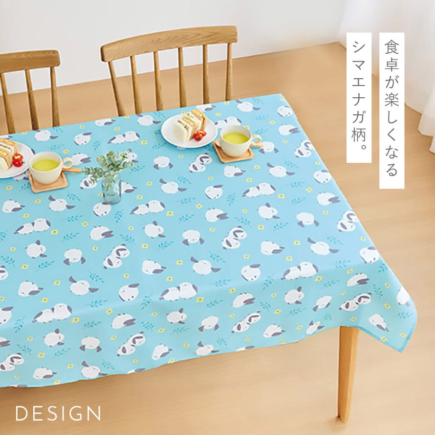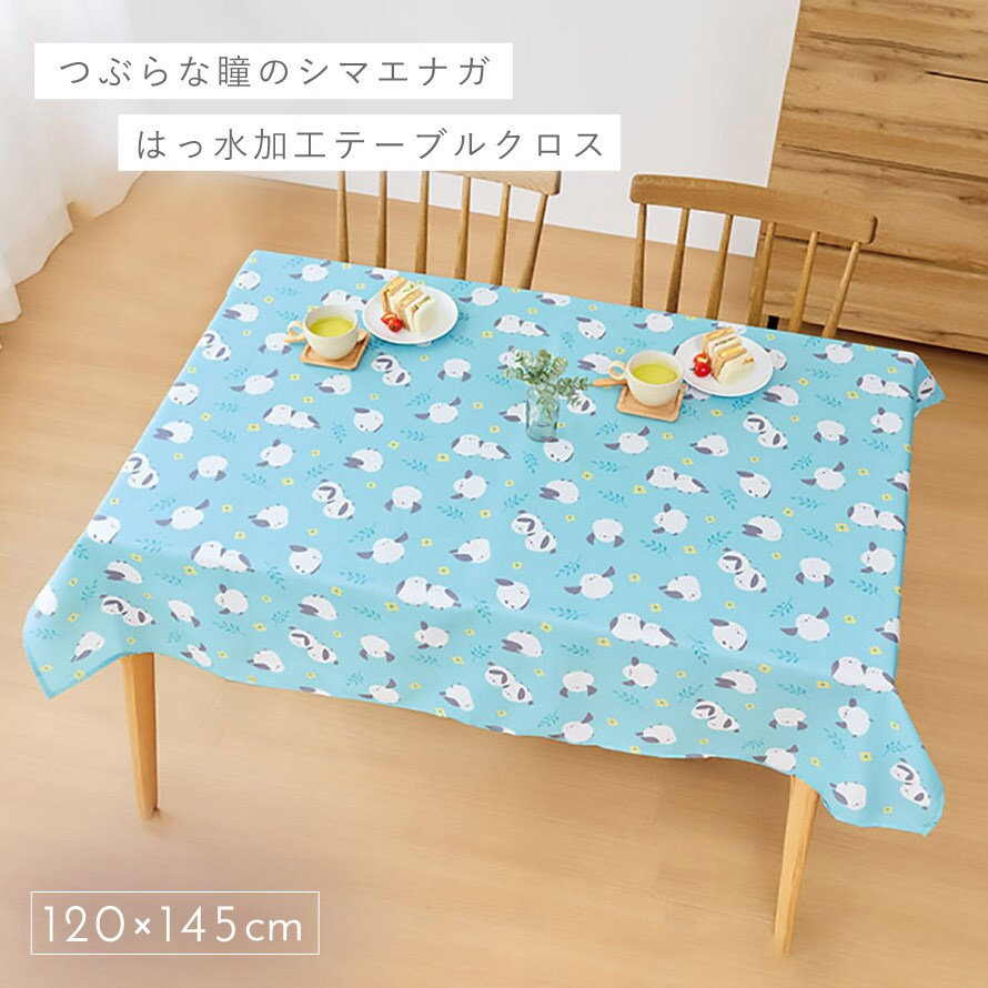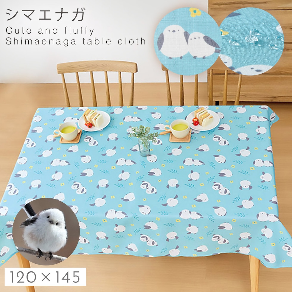 テーブルクロス 120×145cm 撥水 ポリエステル 大判 シマエナガ 北欧 ブルー かわいい おしゃれ テーブル 汚れ 防止 カバー はっ水テーブルクロス シマエナガ