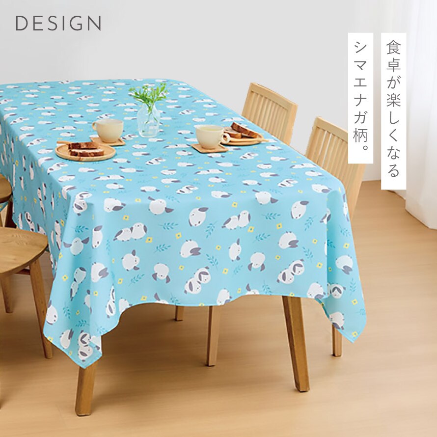テーブルクロス 145×180cm 撥水 ポリエステル 大判 シマエナガ 北欧 ブルー かわいい おしゃれ テーブル 汚れ 防止 カバー 大きめはっ水テーブルクロス シマエナガ