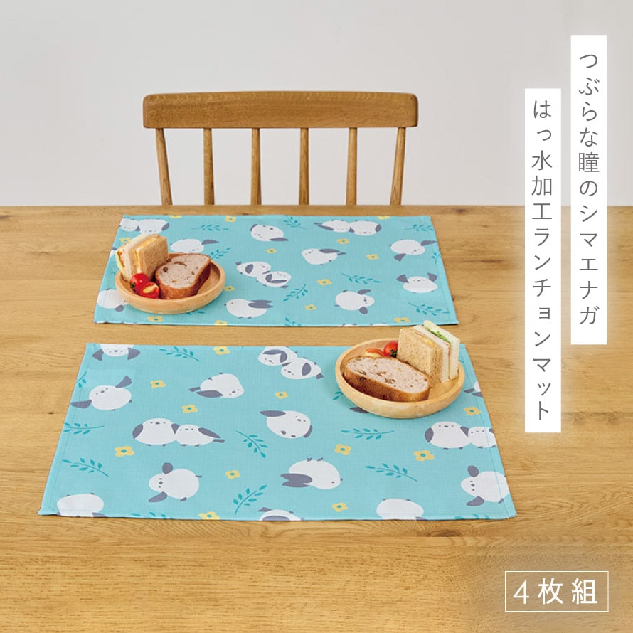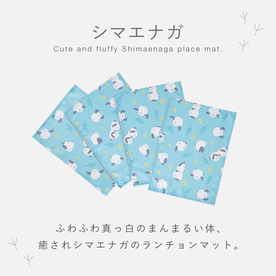 ランチョンマット 32×45cm 4枚 撥水 ポリエステル 長方形 シマエナガ 北欧 ブルー かわいい おしゃれ セット テーブル 汚れ 防止 カバー はっ水ランチョンマット シマエナガ 4枚組
