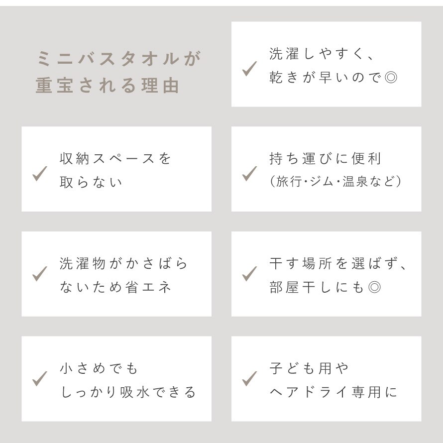 こちらのタオルは別サイズ(フェイスタオル、バスタオル、大判バスタオル)もございます。シリーズで揃えて統一感のあるインテリアに。