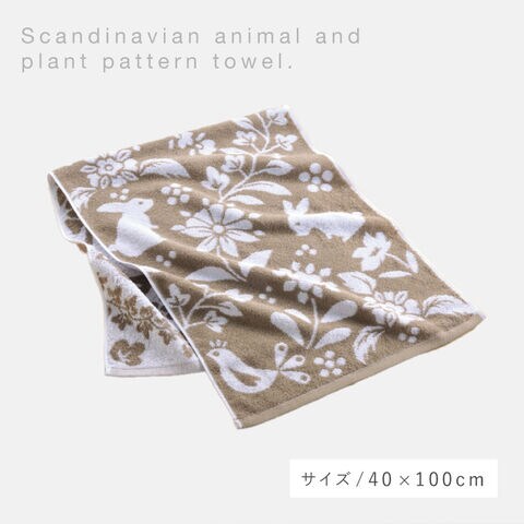 今治ブランドの高級品質、森の動植物がモチーフの北欧柄ミニバスタオル。