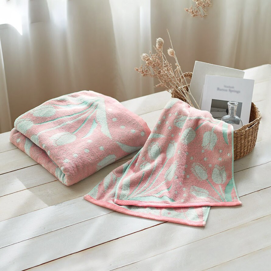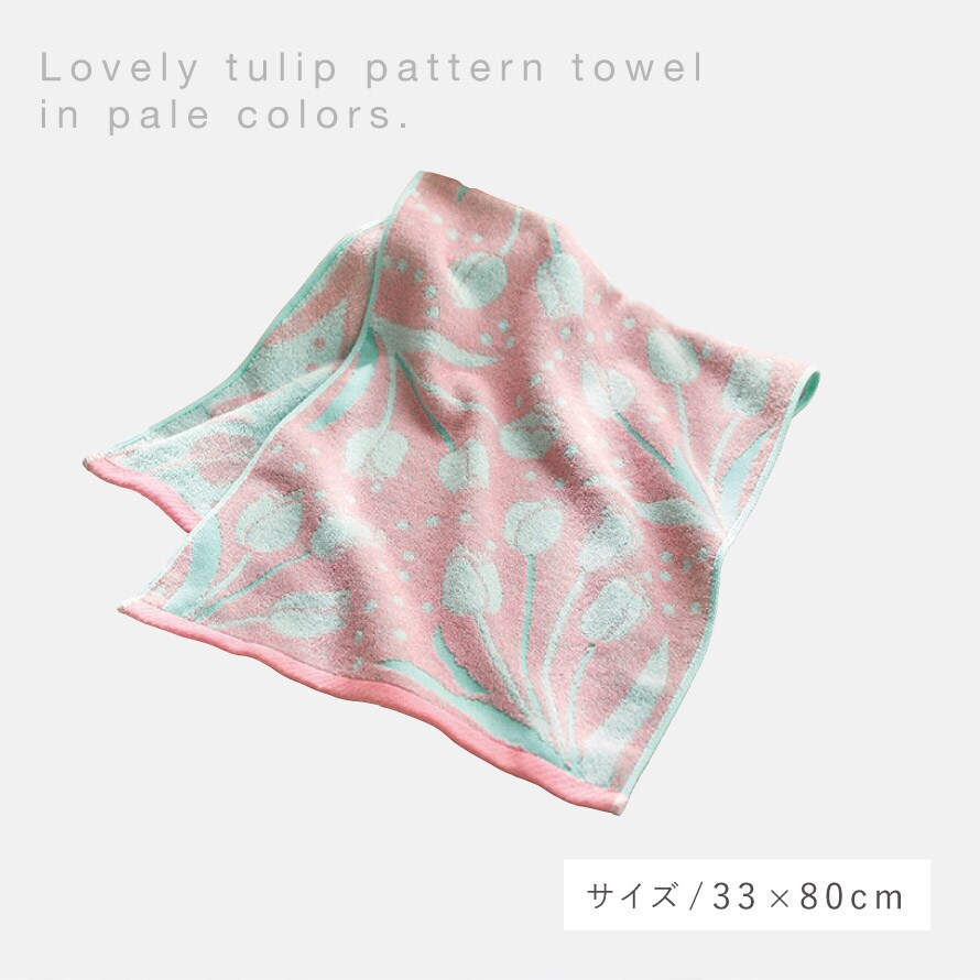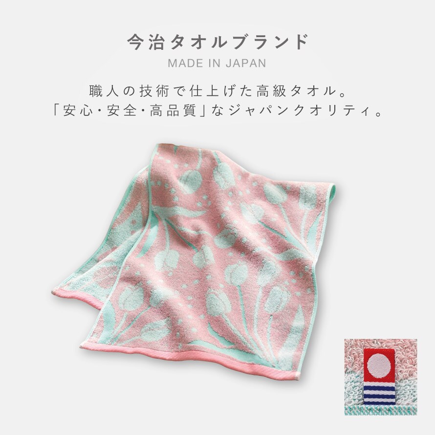今治ブランドの高級品質、ソフトな触り心地のチューリップ柄タオル。