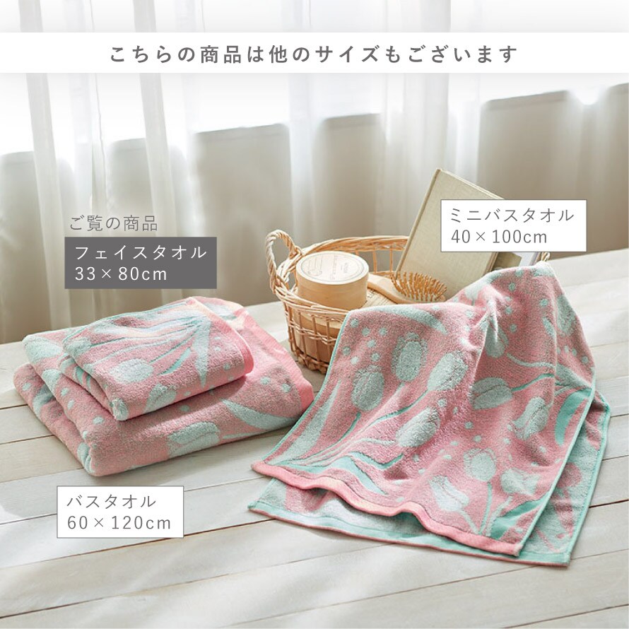こちらのタオルは別サイズ(ミニバスタオル、バスタオル)もございます。シリーズで揃えて統一感のあるインテリアに。