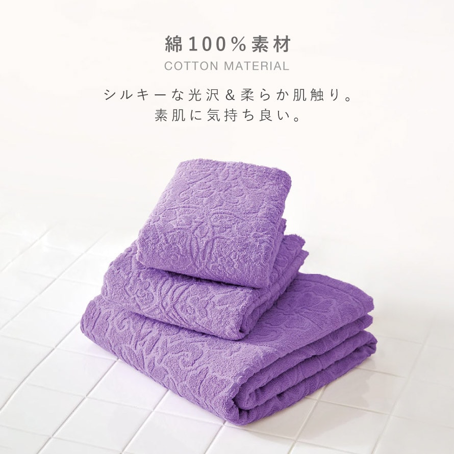 こちらのタオルは別サイズ(フェイスタオル、バスタオル)もございます。シリーズで揃えて統一感のあるインテリアに。