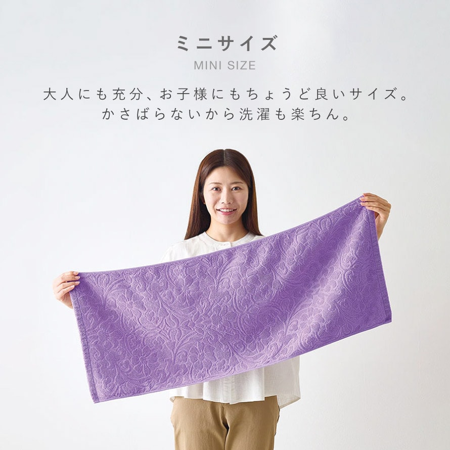 今治ブランドの高級品質、ソフトな触り心地のミニバスタオル。