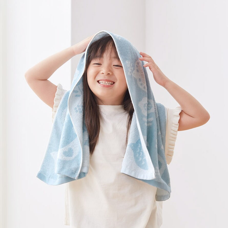 大人が体を拭くにも充分、バスタオルなら少し大きく感じるお子様にもちょうど良いサイズ。