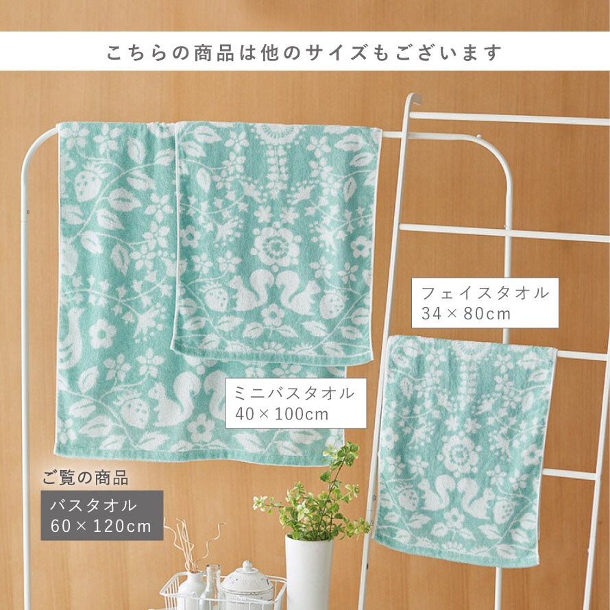 こちらのタオルは別サイズ(フェイスタオル、ミニバスタオル)もございます。シリーズで揃えて統一感のあるインテリアに。