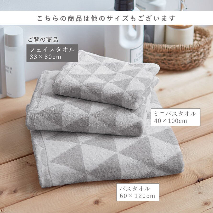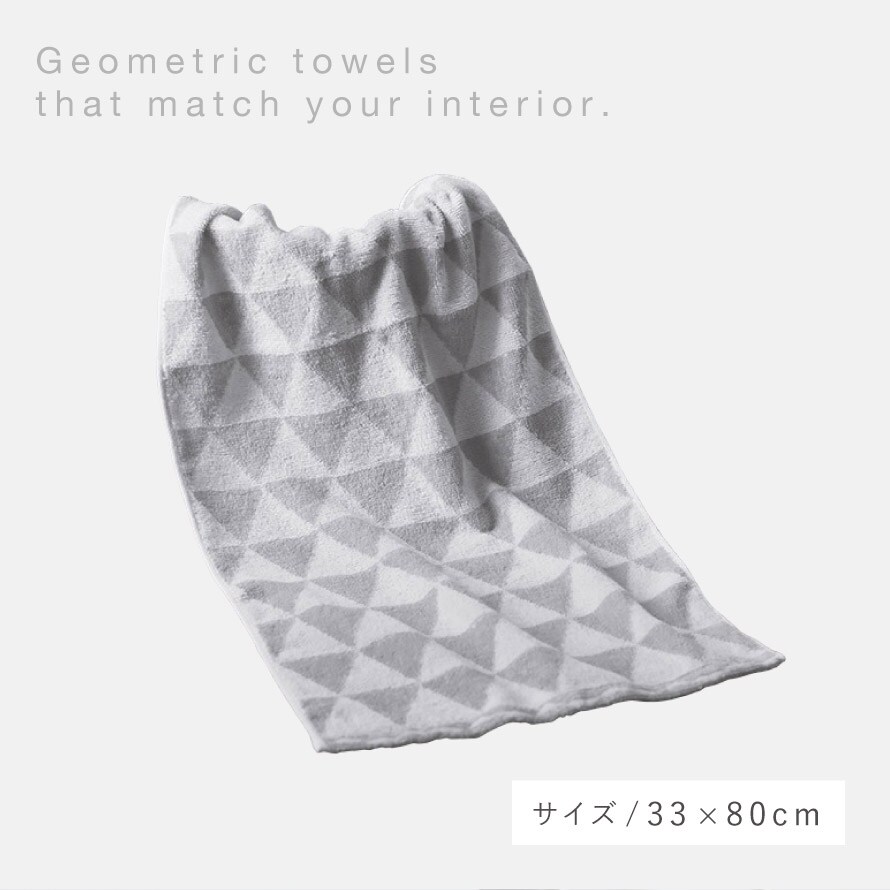 幾何学柄とモノトーンカラーが洗練されたデザイン。モダンなお部屋にも合わせやすいスタイリッシュなタオルです。