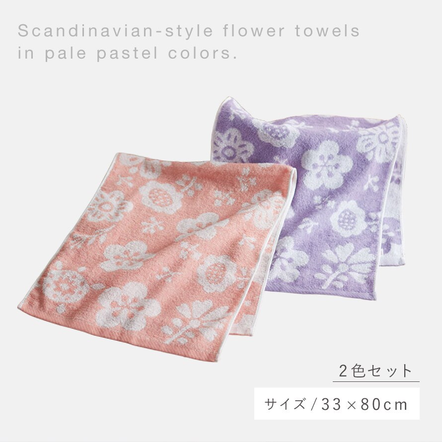 フェイスタオル 今治 北欧 かわいい 2色組 33×80cm 今治タオル 日本製 綿100% 国産 乾きやすい ふわふわ おしゃれ 今治タオルブランド フェイスタオル フラワー2色組