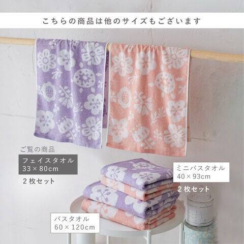こちらのタオルは別サイズ(ミニバスタオル、バスタオル)もございます。シリーズで揃えて統一感のあるインテリアに。