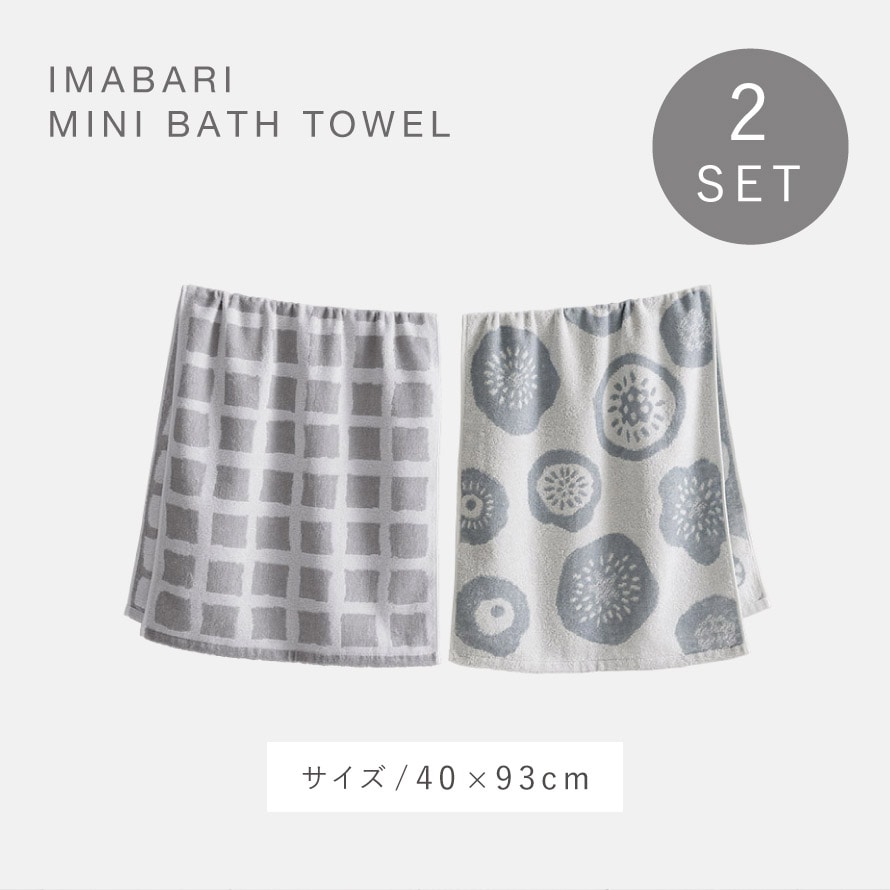 今治タオル ミニバスタオル バスタオル 小さめ 今治 北欧 おしゃれ グレー 40×93cm 2柄組 タオル モノトーン 日本製 綿100% 国産 今治タオルブランドミニバスタオル グレイソル2柄組