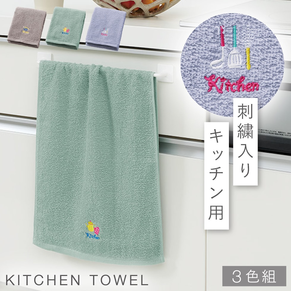 キッチン 手拭き タオル 3枚組 手拭きタオル かわいい 刺繍 キッチンタオル キッチン用 台所 洗い替え おしゃれ キッチン用タオル3色組 エブリデイ
