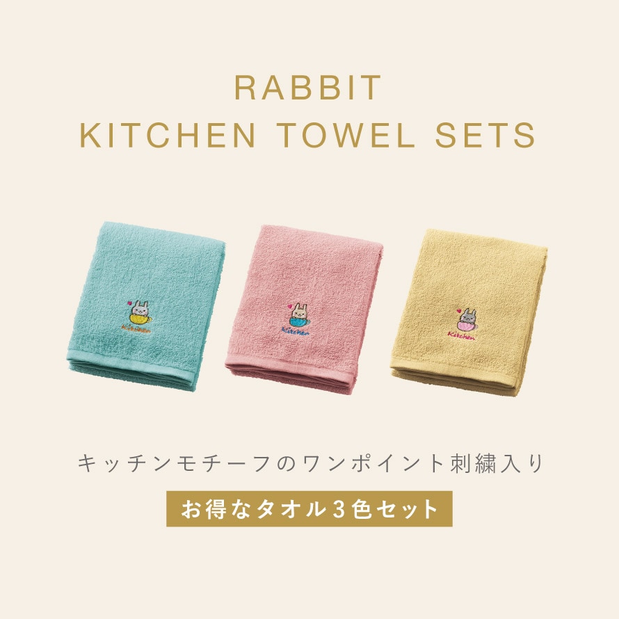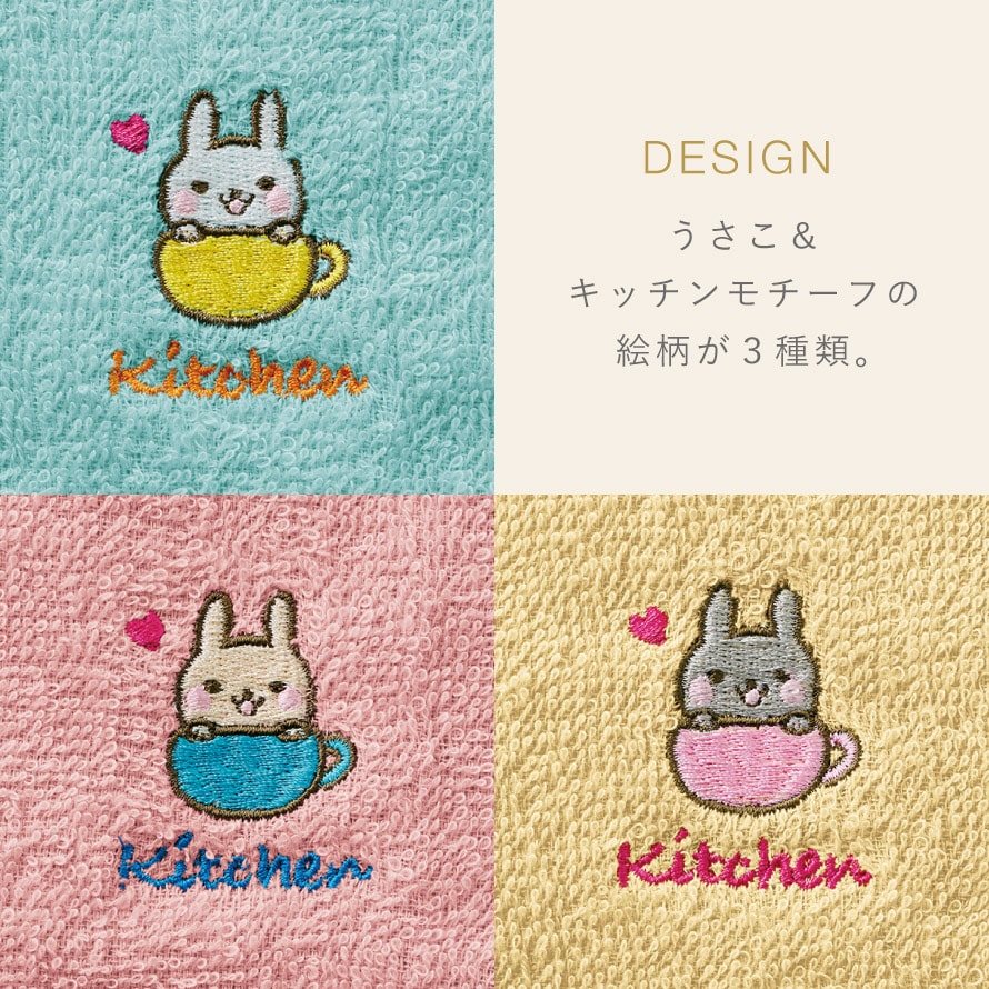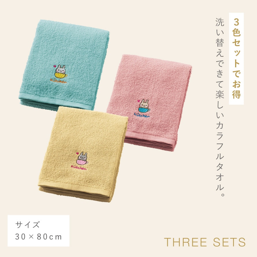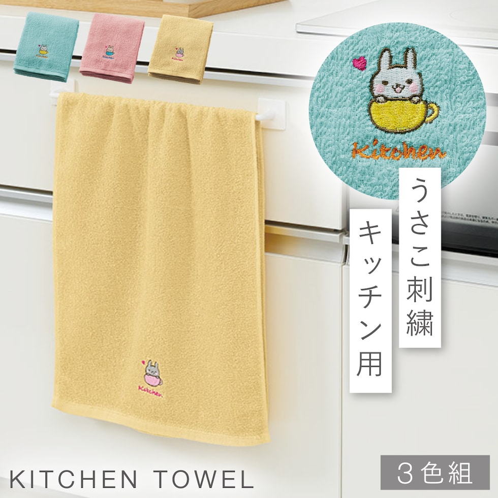 キッチン 手拭き タオル 3枚組 手拭きタオル かわいい 刺繍 キッチンタオル キッチン用 台所 洗い替え おしゃれ キッチン用タオル3色組 うさこの日常