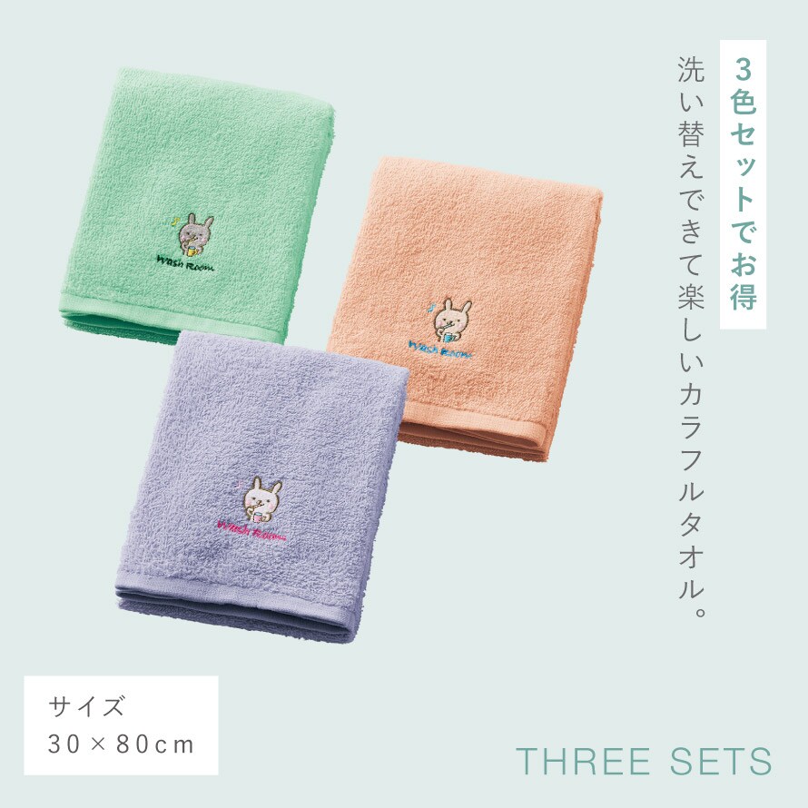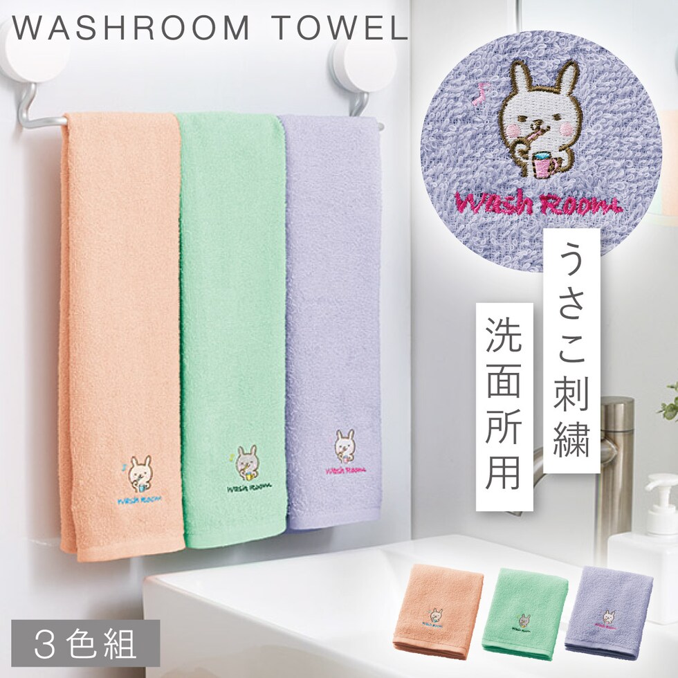 タオル 洗面所 3枚組 手拭きタオル かわいい 刺繍 洗面所用 洗い替え おしゃれ 洗面所用タオル3色組 うさこの日常