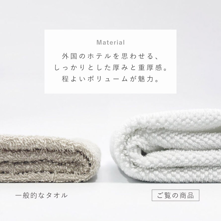 外国のホテルを思わせる、しっかりとした厚みと重厚感。程よいボリュームで、使うたびに感じる安心感と高級感が魅力です。しっかりと織り上げた丈夫な作りで、日常使いはもちろん来客用にもおすすめ。