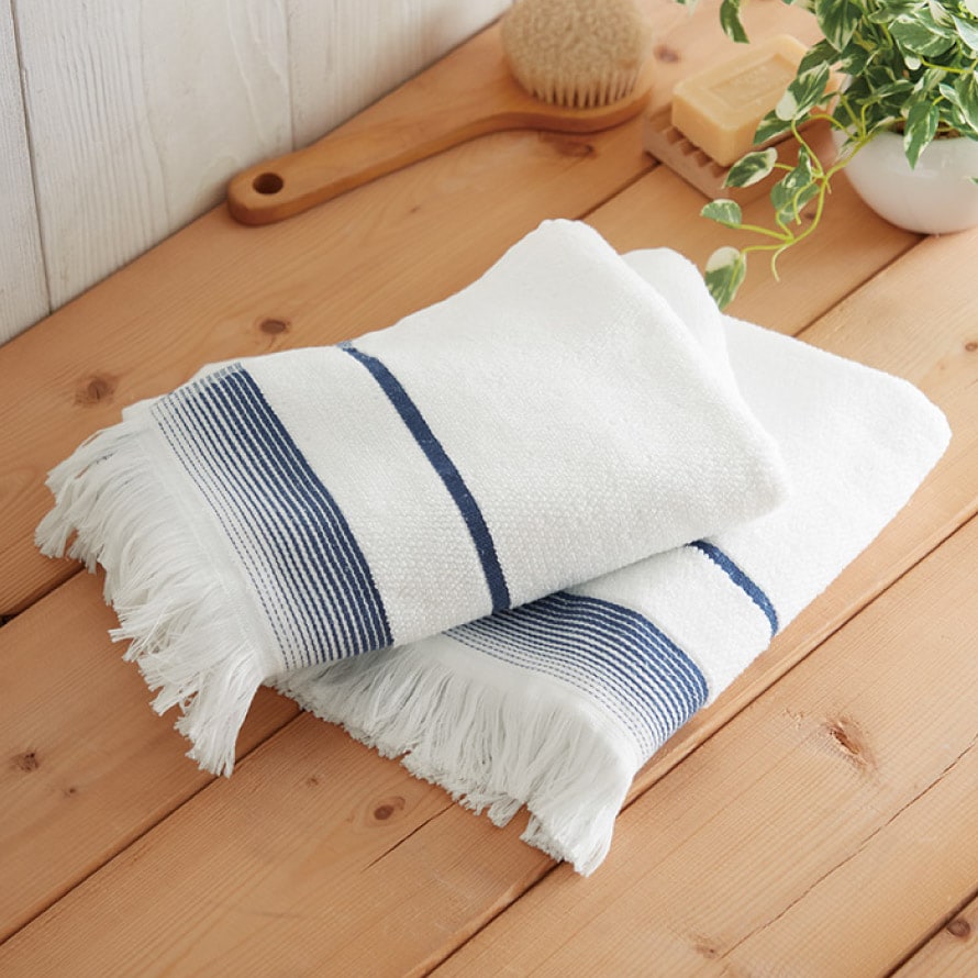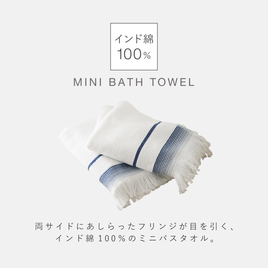 両サイドにあしらったフリンジが目を引く、インド綿100%のミニバスタオル。